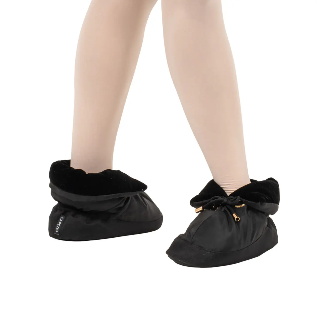 Dodejte svému tanečnímu outfitu styl a pohodlí s elegantními Mini Warmup Booties, ideálními pro zahřátí nohou mezi tréninky a zkouškami. Tato zateplená taneční obuv spojuje funkčnost s nádechem luxusu díky jemnému sametovému lemu v horní části a elegantní černé barvě.