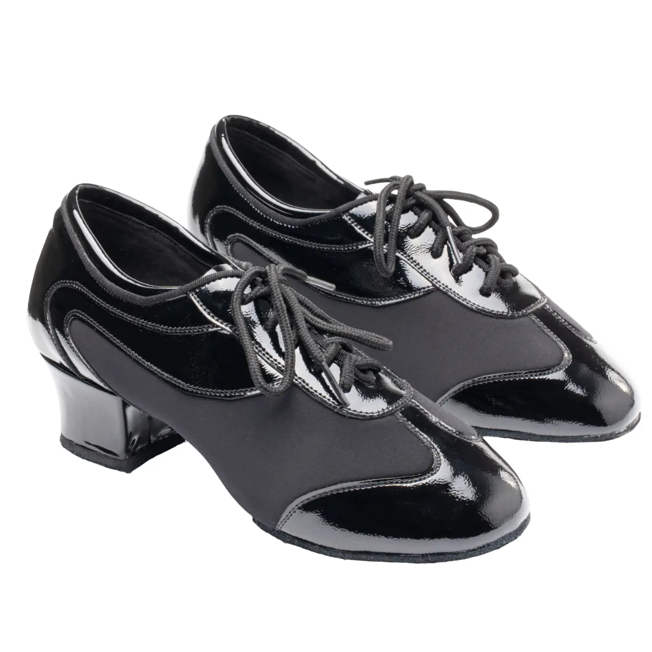 Svršek je vyroben z kombinace umělé kůže a elastického neoprenu, který se přizpůsobuje chodidlu a zvyšuje komfort při tanci. Neopren zároveň zajišťuje prodyšnost a lepší odvod vlhkosti, což oceníte zejména při delším nošení. Špička boty je potažena lakovaným patentem, který tvoří výrazný designový prvek a dodává botám šmrnc a eleganci.