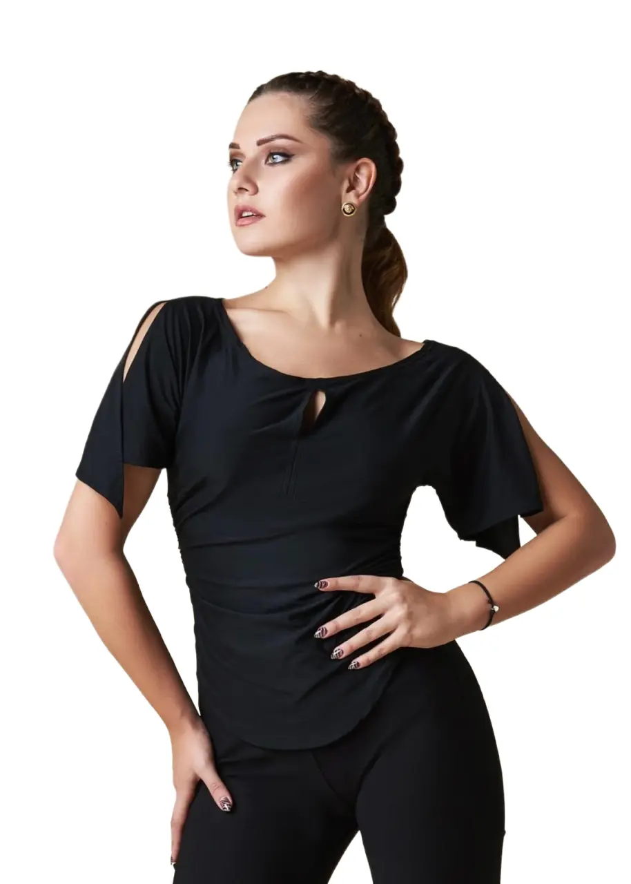 Dámská blůzka Fiji je elegantní taneční kousek navržený pro tréninky společenských tanců i vystoupení. Je vyrobená z pružného mikropoliamidu, který je příjemný na dotek, lehký a poskytuje maximální volnost pohybu během tance.